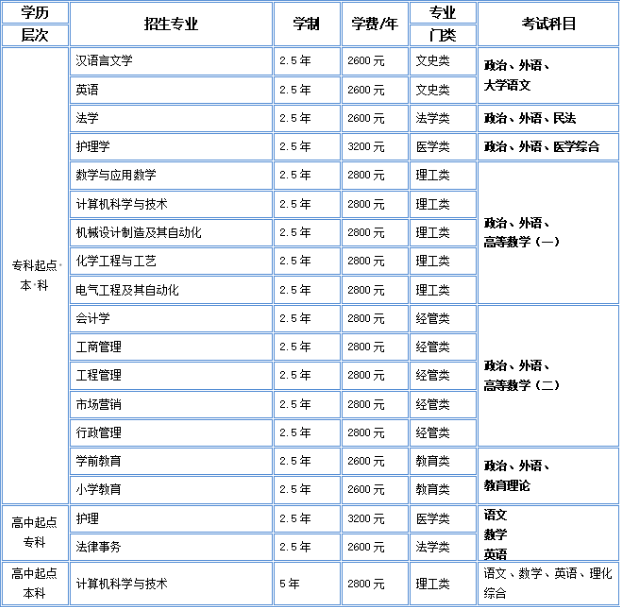 继续教育专科起点本科专业16个,高中起点本科专业1个,高中起点专科专业2个,基本涵盖了学校普通教育的十一大学科门类;学校现有高等学历继续教育本、专科在籍学生23000余人。立足新起点,实现新突破,学校将不断深化高等学历继续教育教学改革、强化服务意识、创新人才培养,推动高等学历继续教育水平再上新台阶,热忱欢迎有志之士报考我校,共创美好未来。